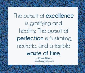 Pursuing excellence is not the same as pursuing perfection. We are imperfect beings because of sin and that is why the Law was given in the first place. God wants us to become holy, to be like Him. The apostle Paul learned the difference the hard way. Paul was the best of the best with a perfect pedigree, had the best teachers and held strict adherence to the Law. (Phillippians 3) He was so zealous for God’s righteous law that he forgot about God’s love and mercy. Paul had to learn, “it’s not about me”.