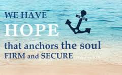 I have learned through the various “storms” of my life that God is in control. When an anchor is working it cannot be seen. God is always at work and my trust in Him keeps me from crashing or mentally and spiritually drifting away. Christ goes before the Father on my behalf and has given me peace, strength and discernment to deal with the situation. One of my favorite Bible stories is when Jesus calmed the sea and it is retold in three of the four gospels .